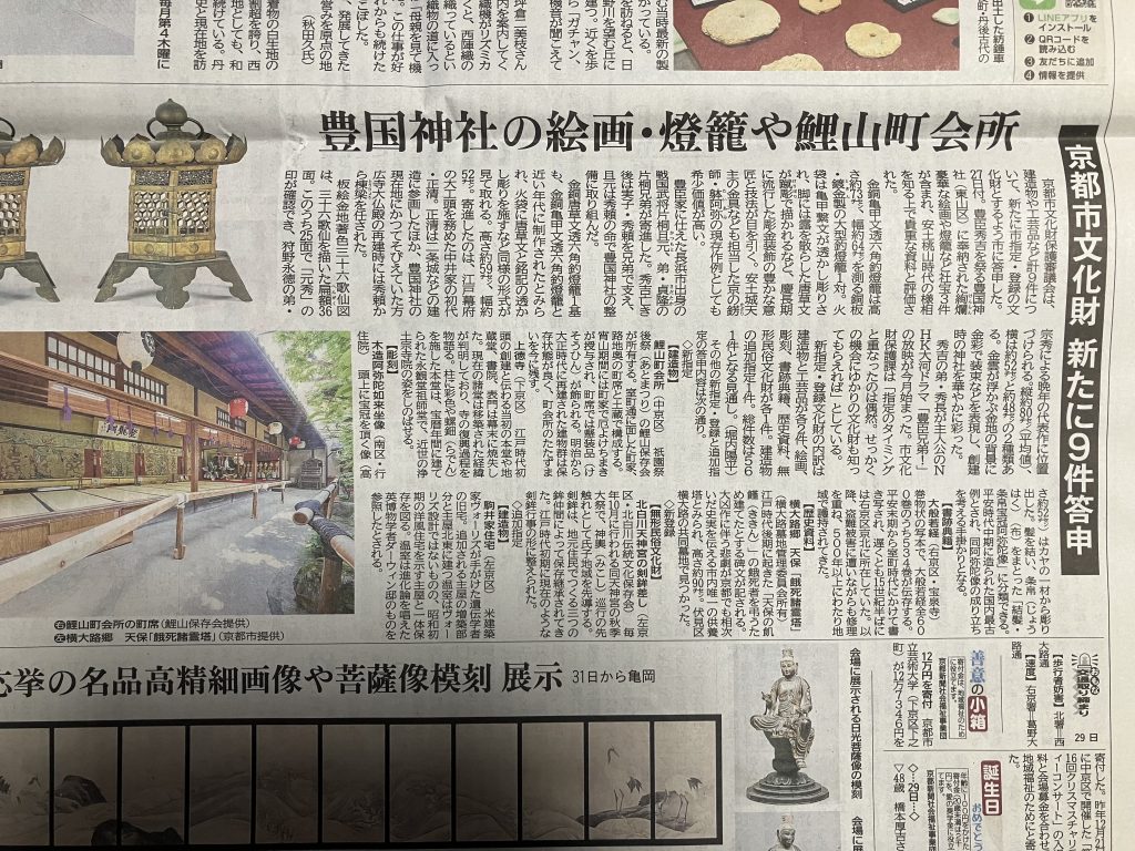 無形民俗文化財 指定 2026年1月29日 京都新聞 京都市文化財保護審議会は、 建造物や工芸品など計9件について、新たに市指定・登録の文化財とするように答申した。 【無形民俗文化財】 北白川天神宮の剣鉾差し(左京区・北白川伝統文化保存会) 毎年10月に行われる同天神宮の秋季大祭で、神輿(みこし) 巡行の先 触れとして氏子地域を先導する。剣鉾は、地元住民でつくる三つの 鉾仲間によって保存継承されてきた。江戸時代初期に現在のような剣鉾行事の形に整えられた。 ◇追加指定 【 By ishimago | 2026年1月29日 | 未分類 | ← 北白川 壱之鉾 通信 Vol.1